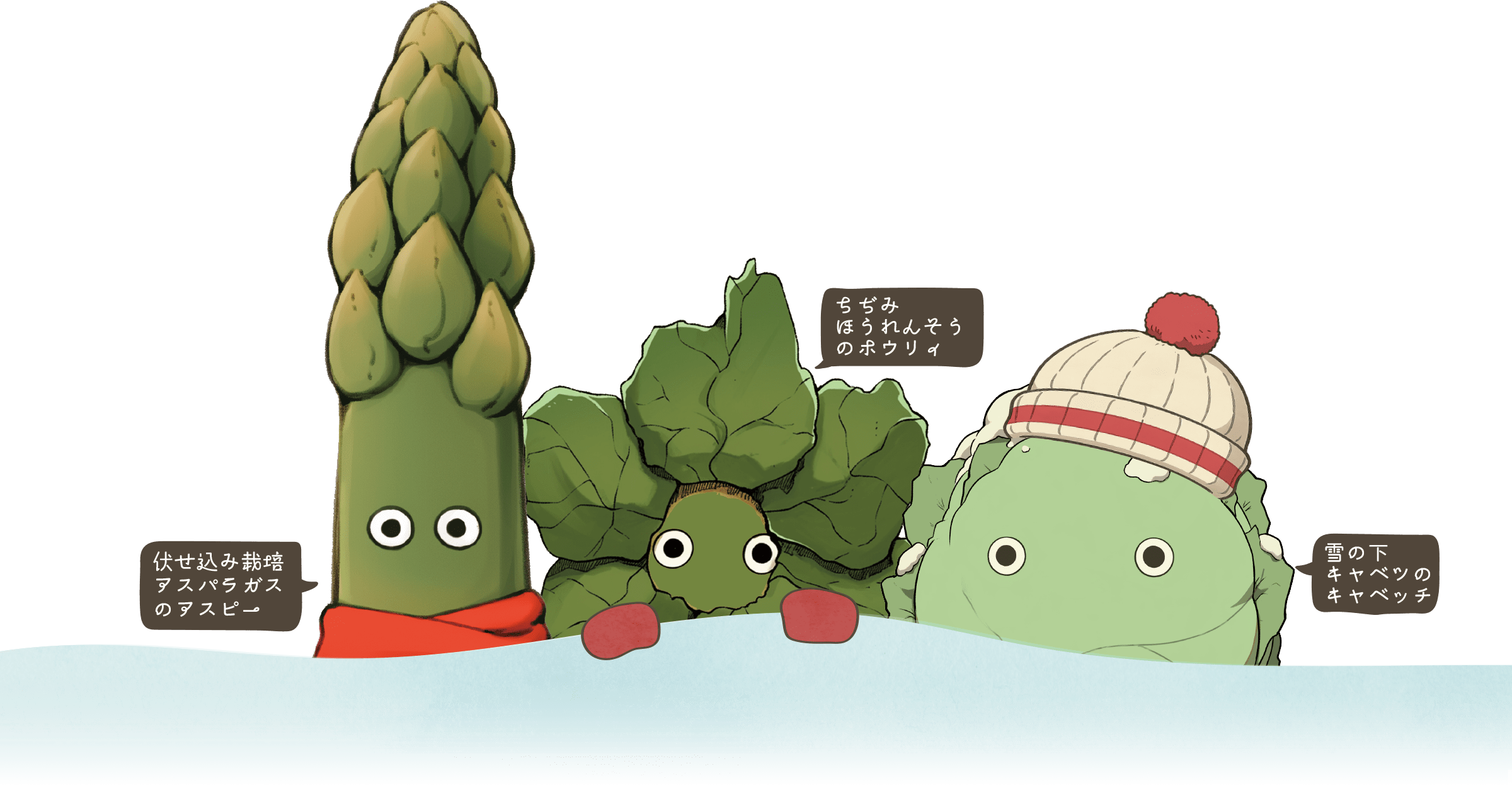 春先、ほかの地域ではまだ出回らない時期に収穫できる「伏せ込みアスパラガス」や、雪の下でじっくり甘みを蓄える「雪の下キャベツ」も、北海道ならではの冬の味覚。