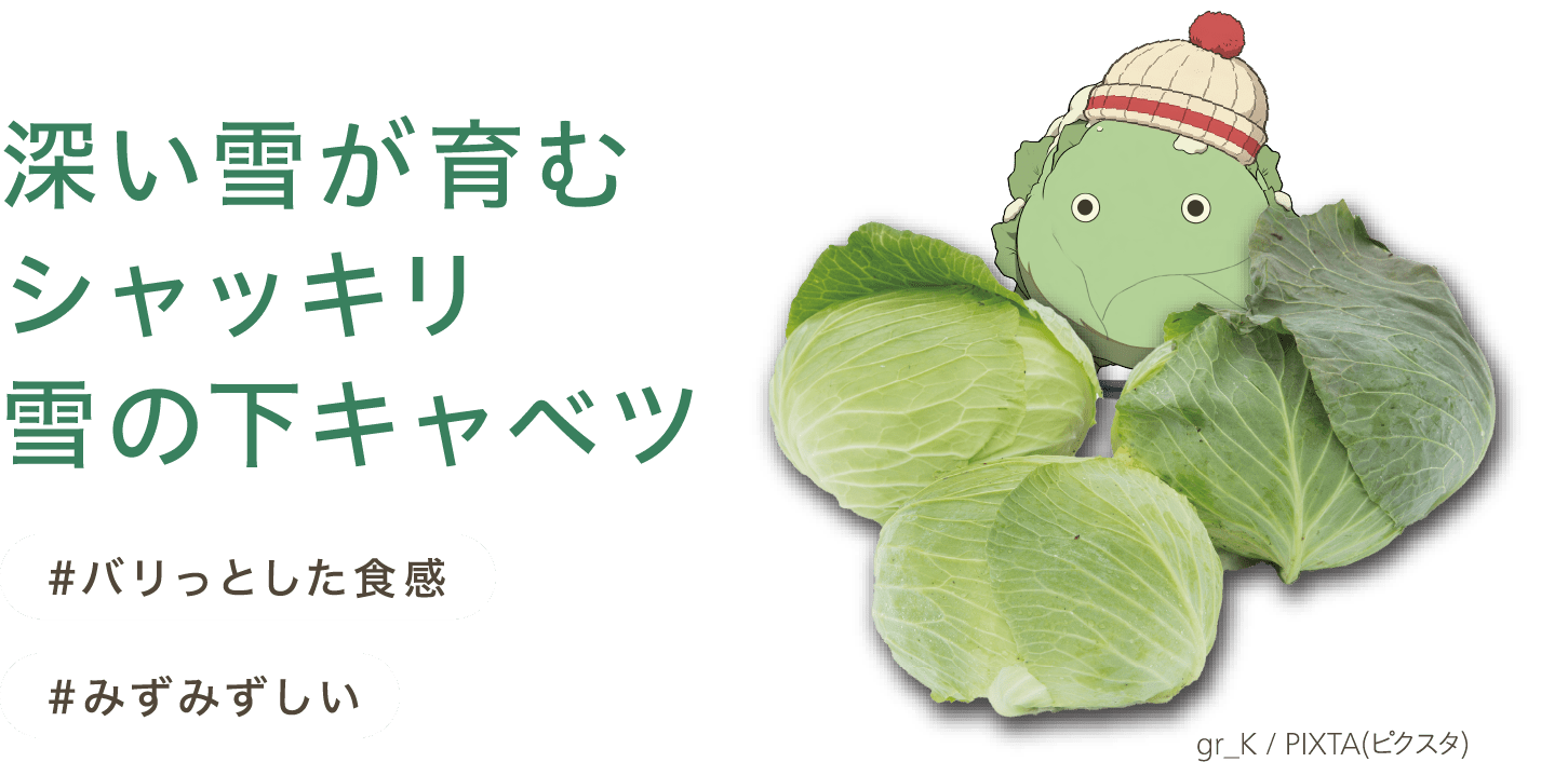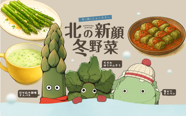 春先、ほかの地域ではまだ出回らない時期に収穫できる「伏せ込みアスパラガス」や、雪の下でじっくり甘みを蓄える「雪の下キャベツ」も、北海道ならではの冬の味覚。